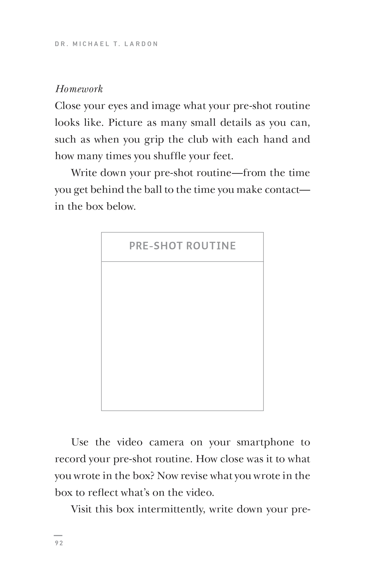 Excerpted from Mastering Golf's Mental Game by Dr. Michael T. Lardon and Matthew Rudy. All graphs © by Michael Lardon, MD. Book design by Ellen Cipriano. Cover design by Gabriel Levine. Cover photography by Dan Thornberg/Shutterstock; V Stock LLC/Tetra Images/Corbis. Excerpted by permission of Crown Archetype, an imprint of the Crown Publishing Group, a division of Random House LLC, a Penguin Random House Company, New York. All rights reserved. No part of this excerpt may be reproduced or reprinted without permission in writing from the publisher.