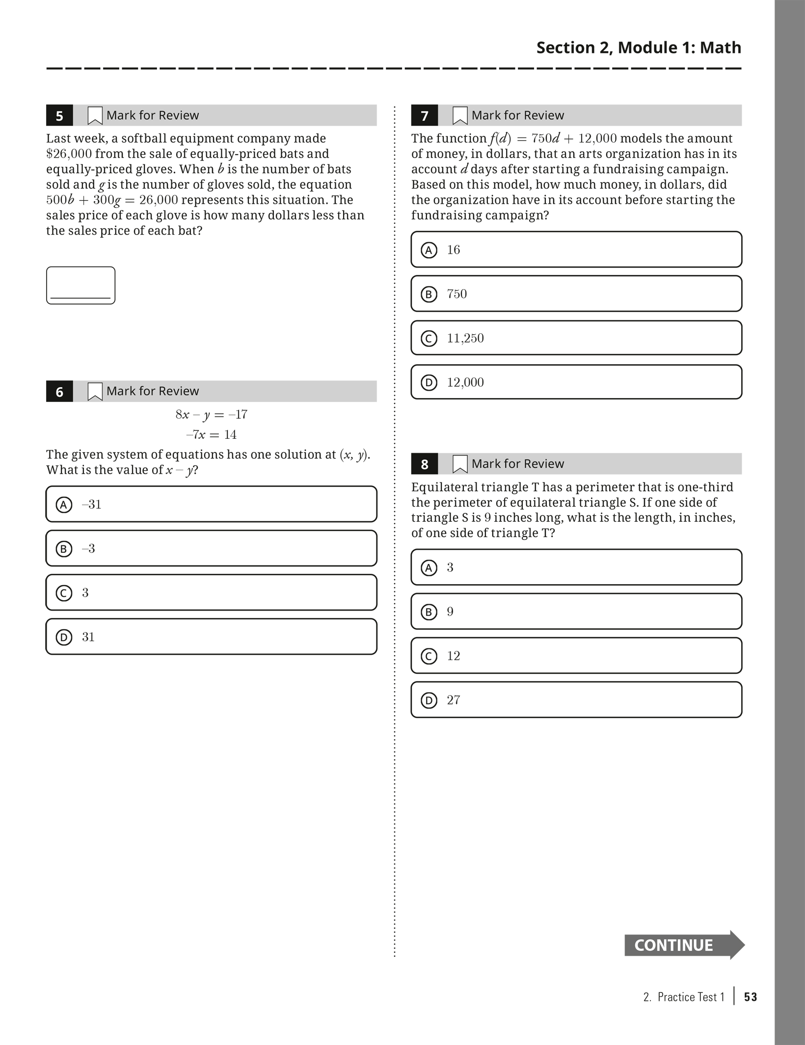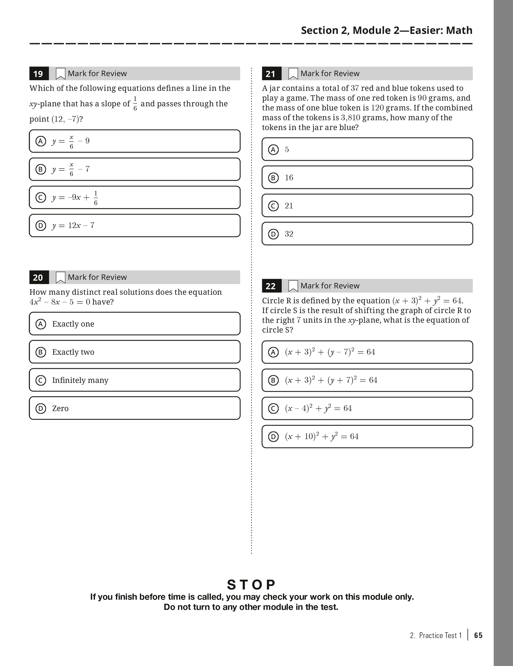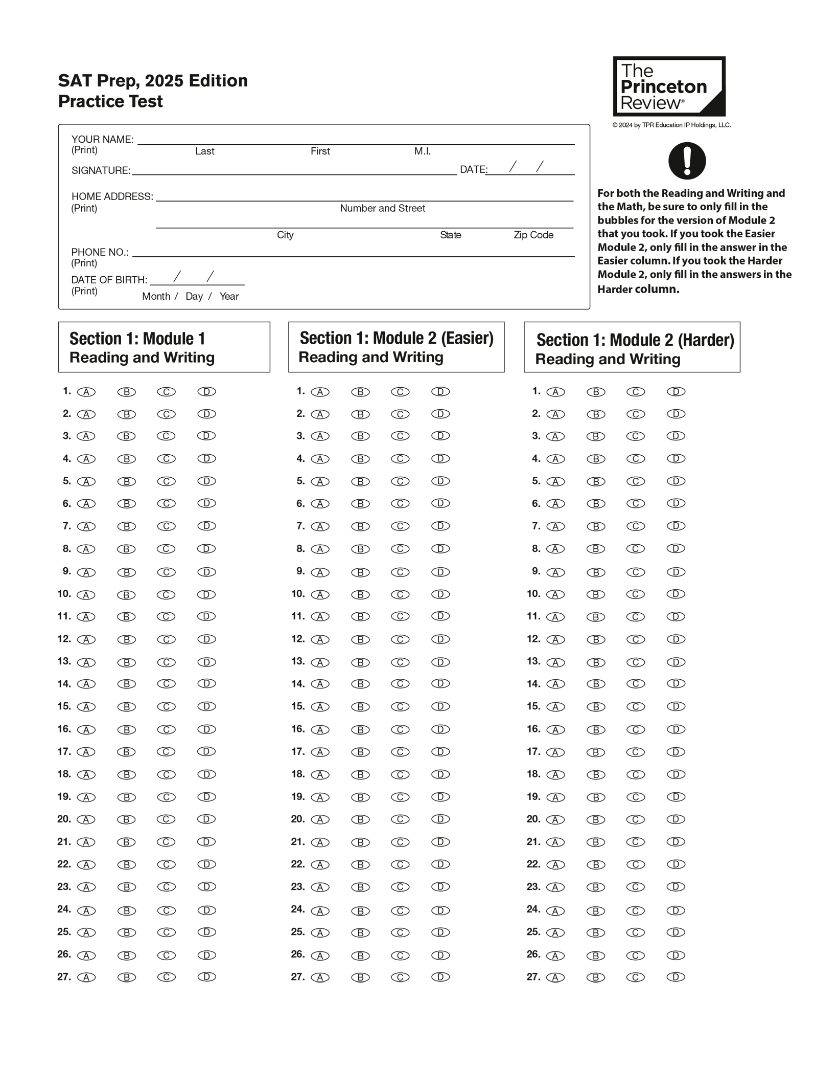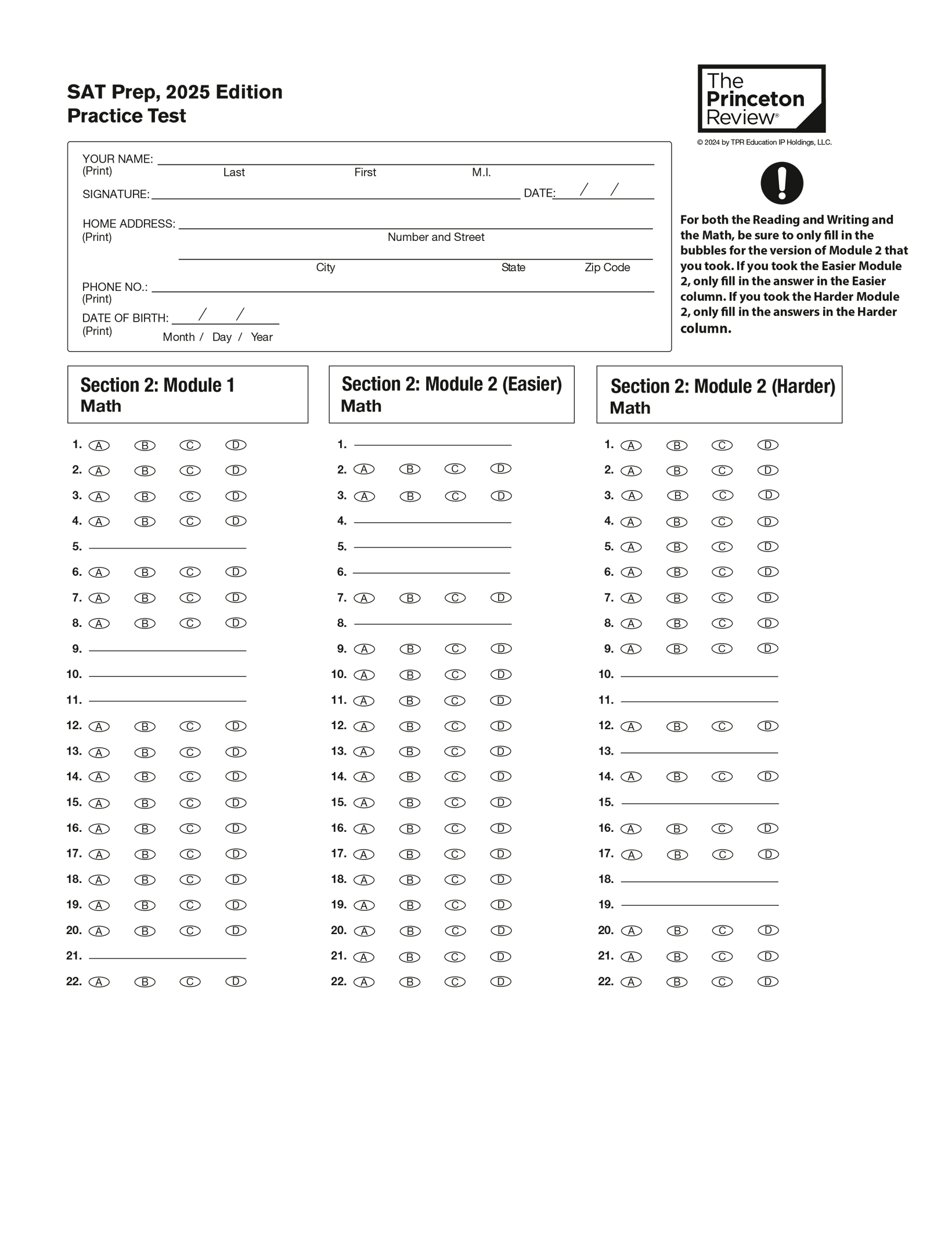 Practice Test 1 with Bubble Sheet: Click here to download as a PDF.