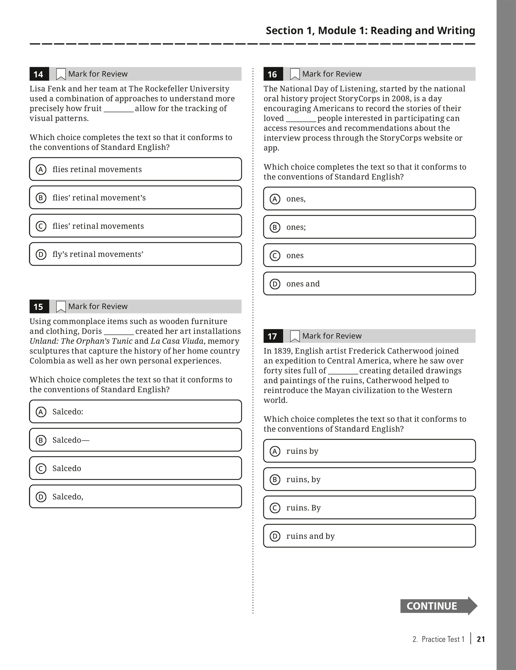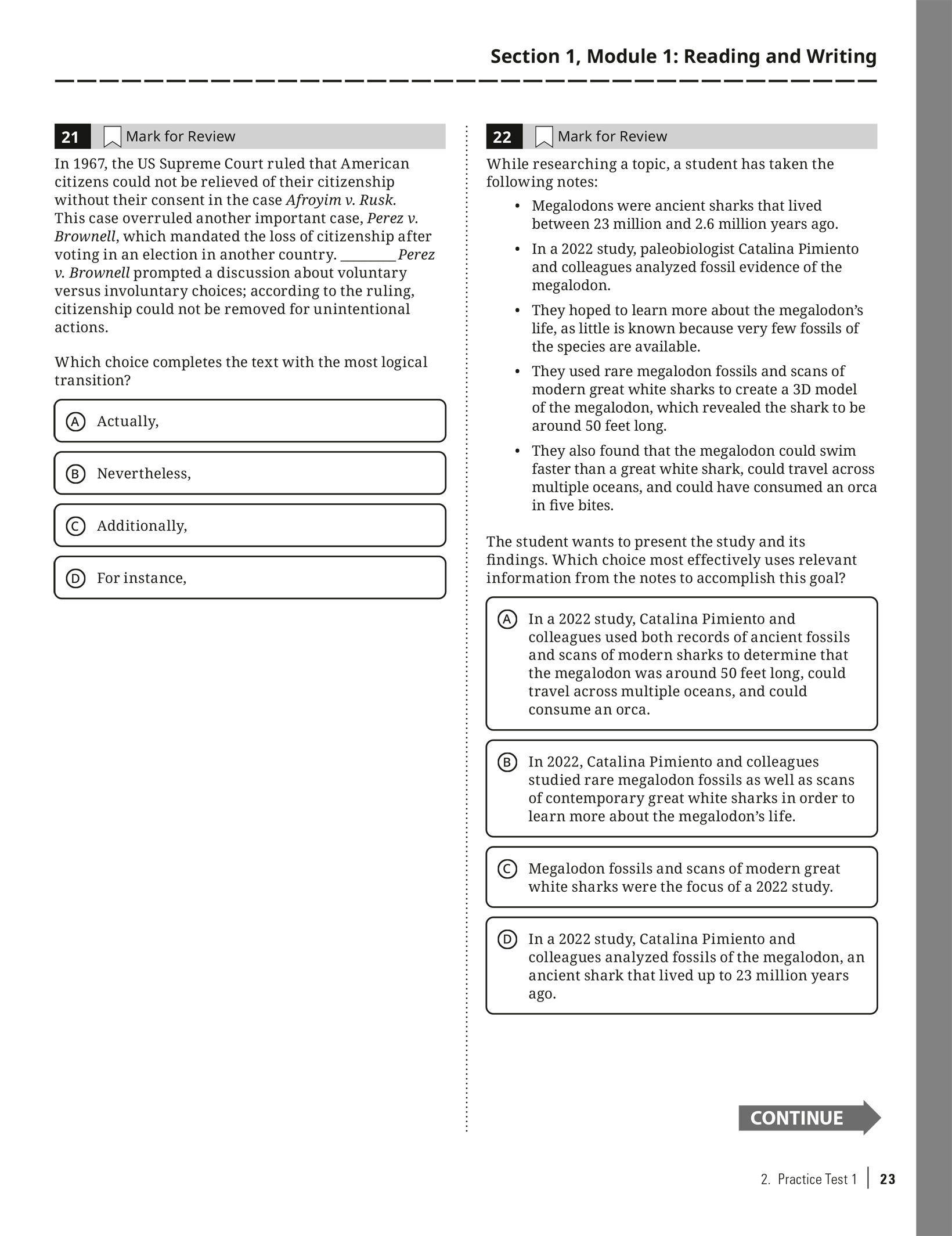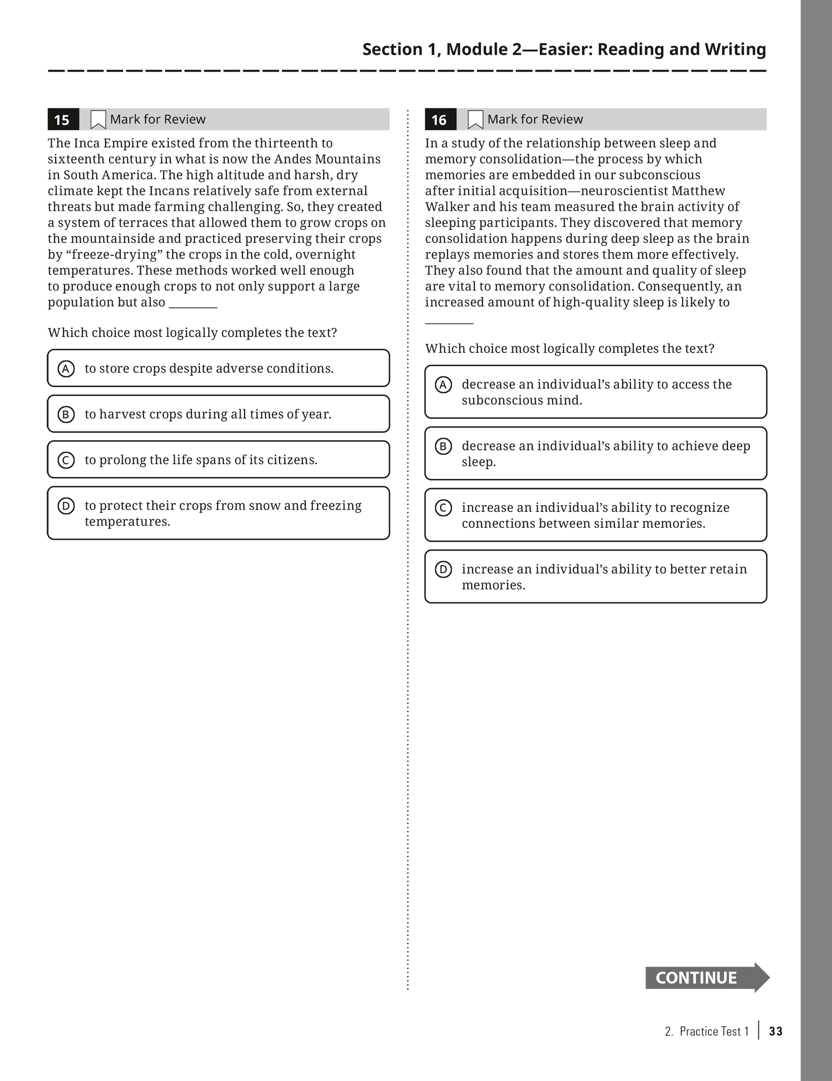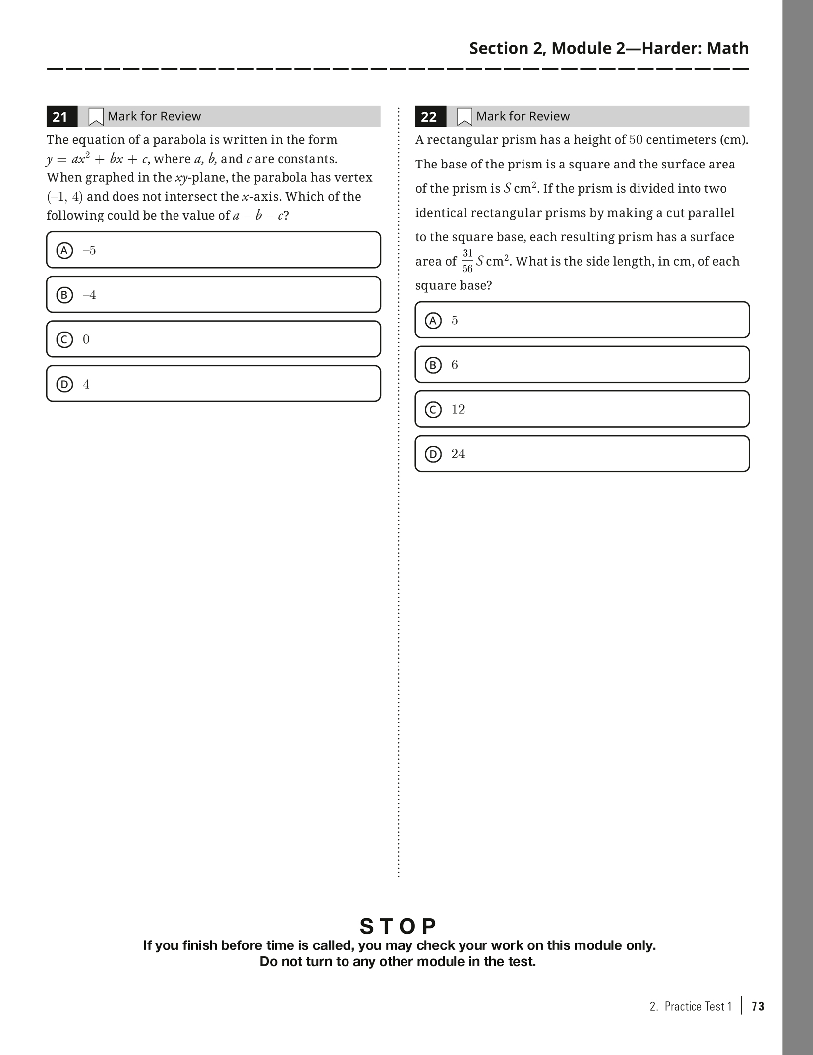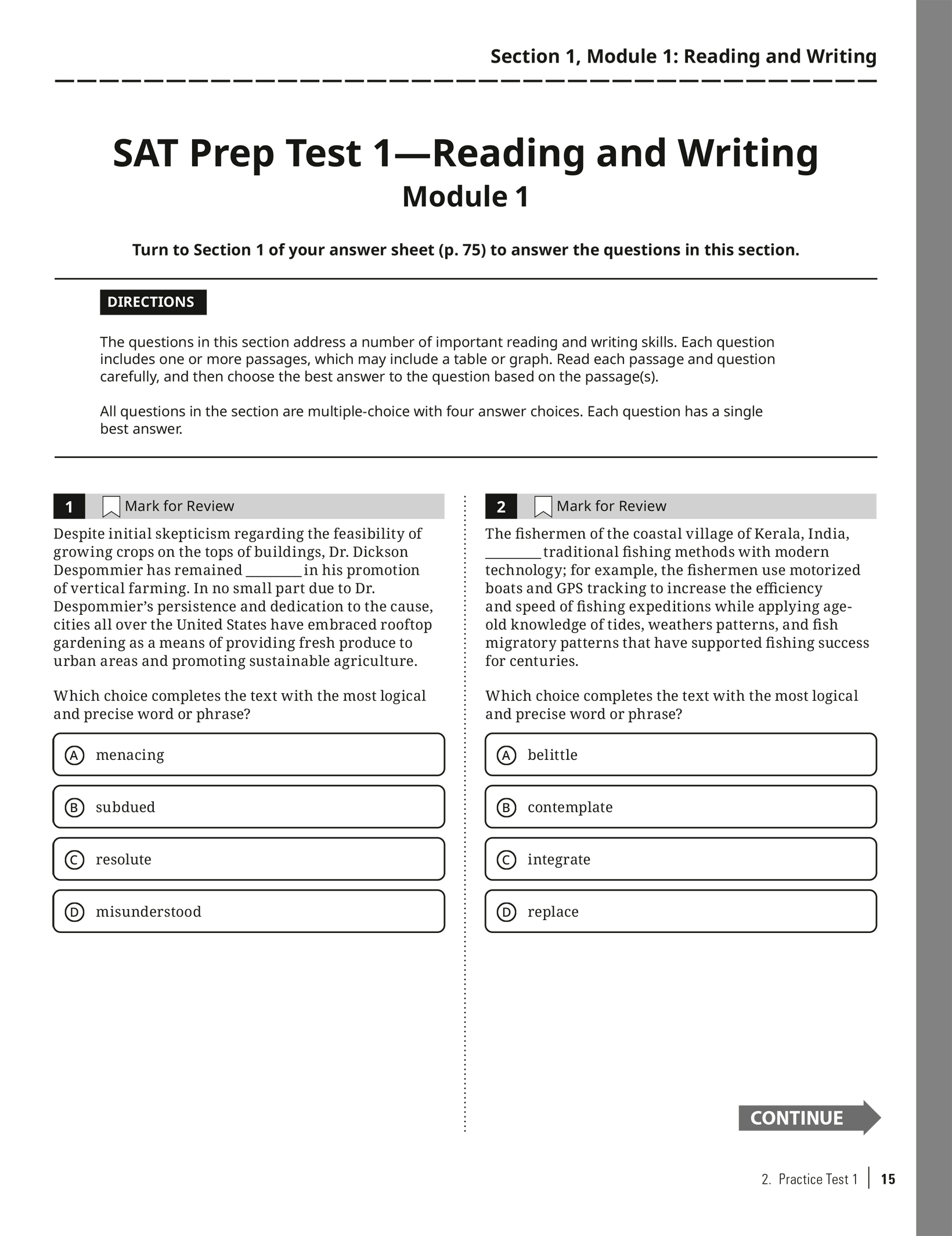 Practice Test 1 with Bubble Sheet: Click here to download as a PDF.