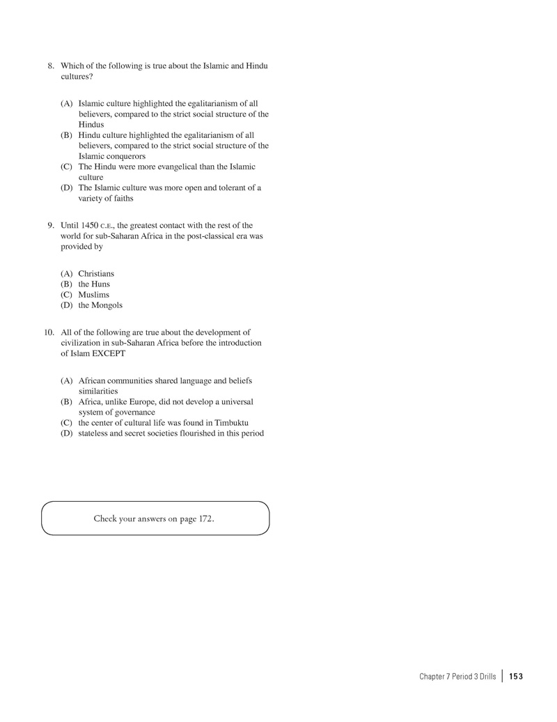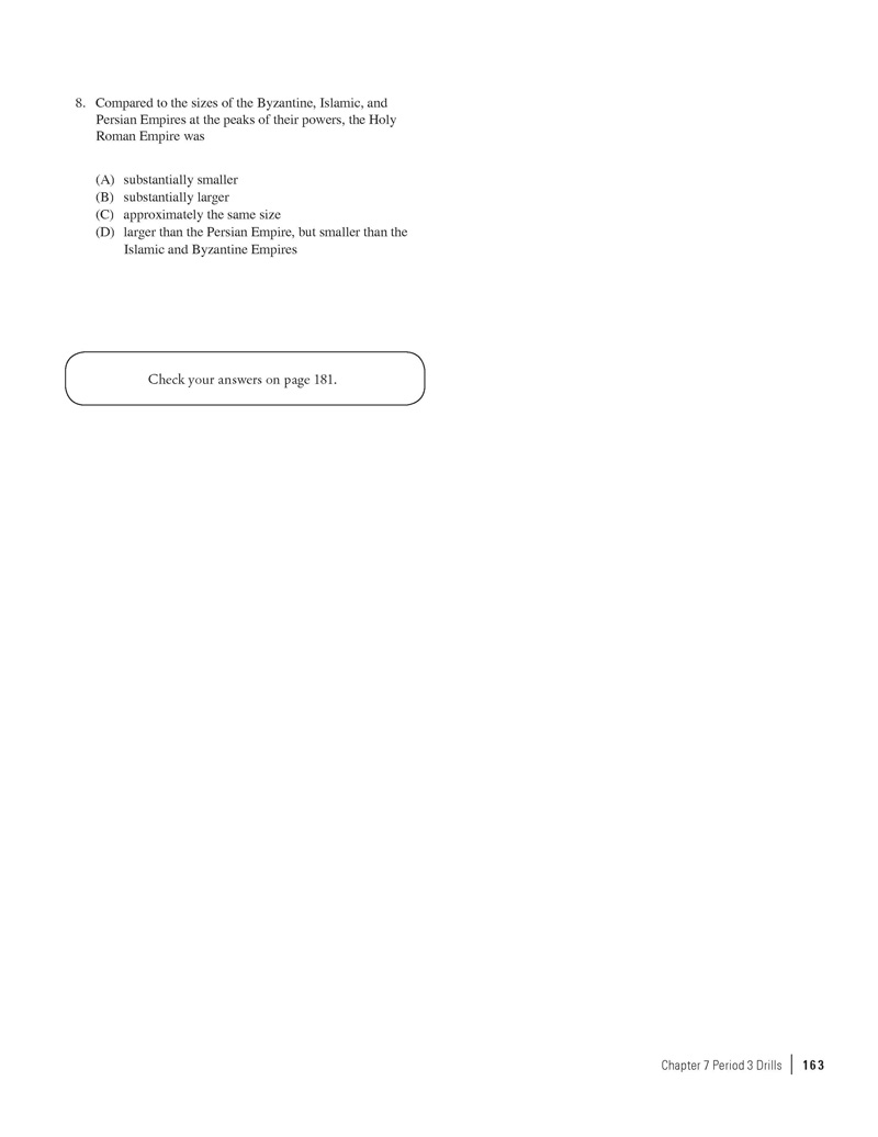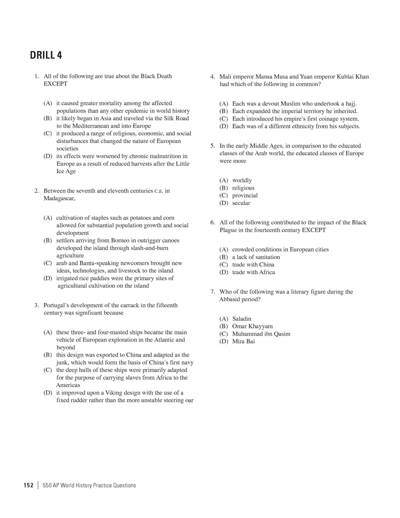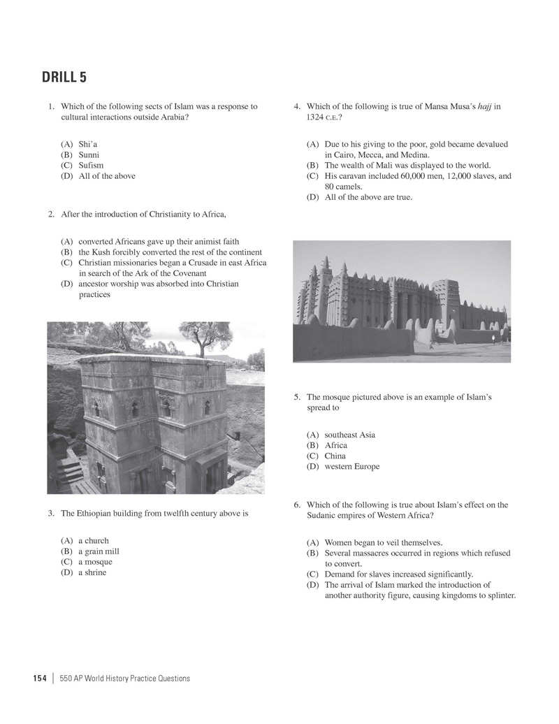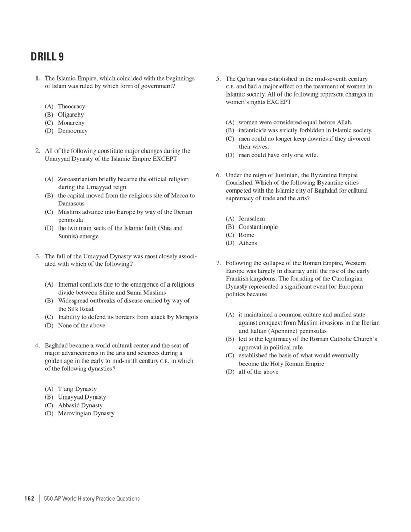 Excerpted from 550 AP World History Practice Questions by the Staff of The Princeton Review. Copyright © 2014 by The Princeton Review, Inc. Excerpted by permission of The Princeton Review imprint of the Random House Children's Group, a division of Random House LLC. All rights reserved. No part of this excerpt may be reproduced or reprinted without permission in writing from the publisher.
