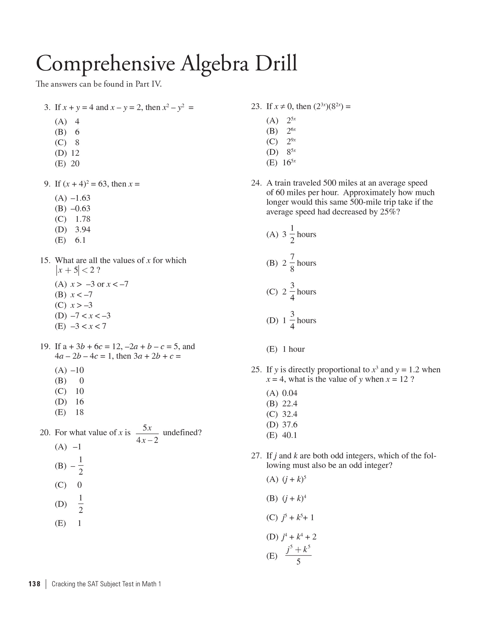 Comprehensive Algebra Drill