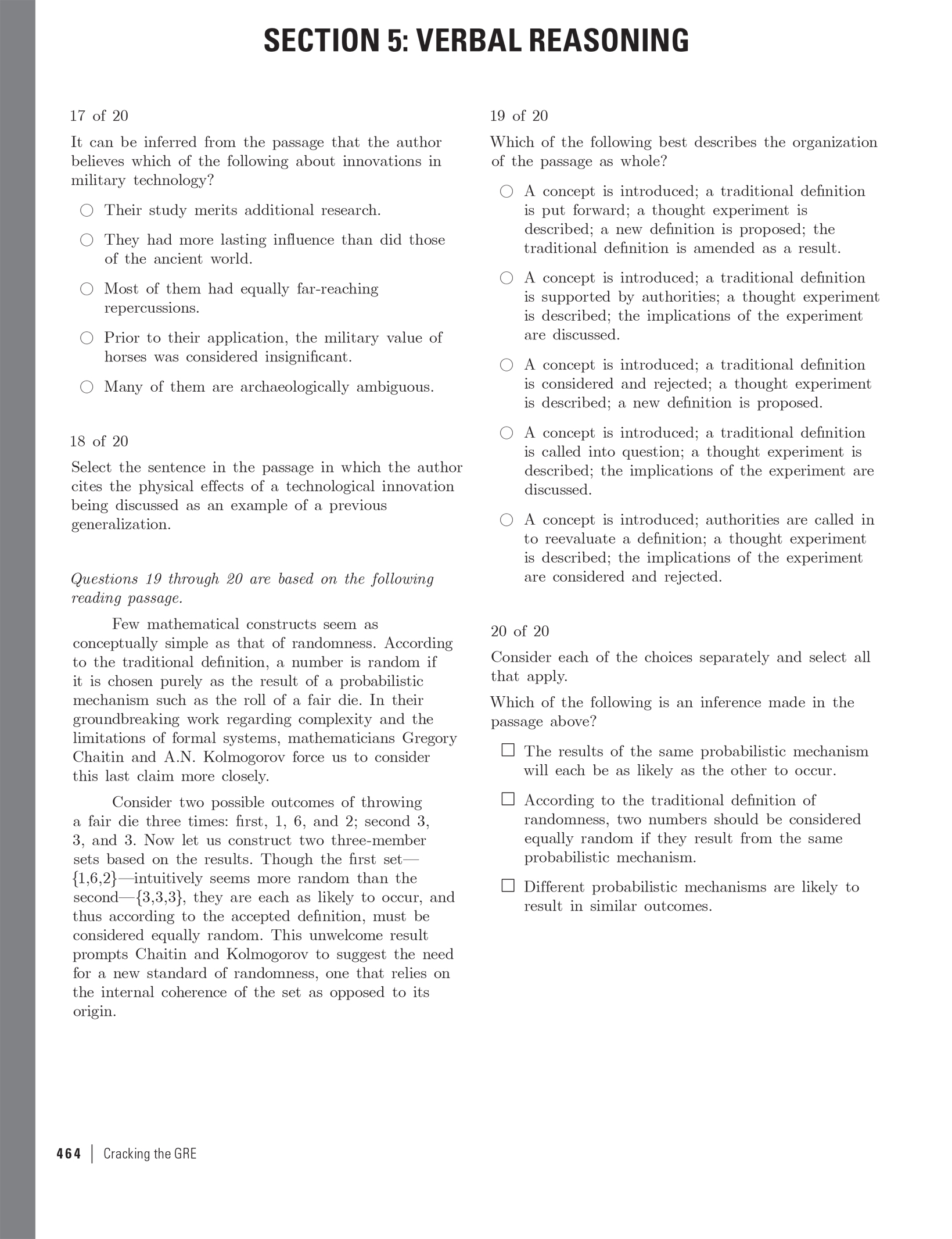 Excerpted from Cracking the GRE Premium Edition with 6 Practice Tests, 2019 by the Staff of The Princeton Review. Copyright © 2018 by TPR Education IP Holdings, LLC. All rights reserved. Excerpted by permission of Penguin Random House LLC, New York, and in Canada by Random House of Canada, a division of Penguin Random House Ltd., Toronto. No part of this excerpt may be reproduced or reprinted without permission in writing from the publisher.