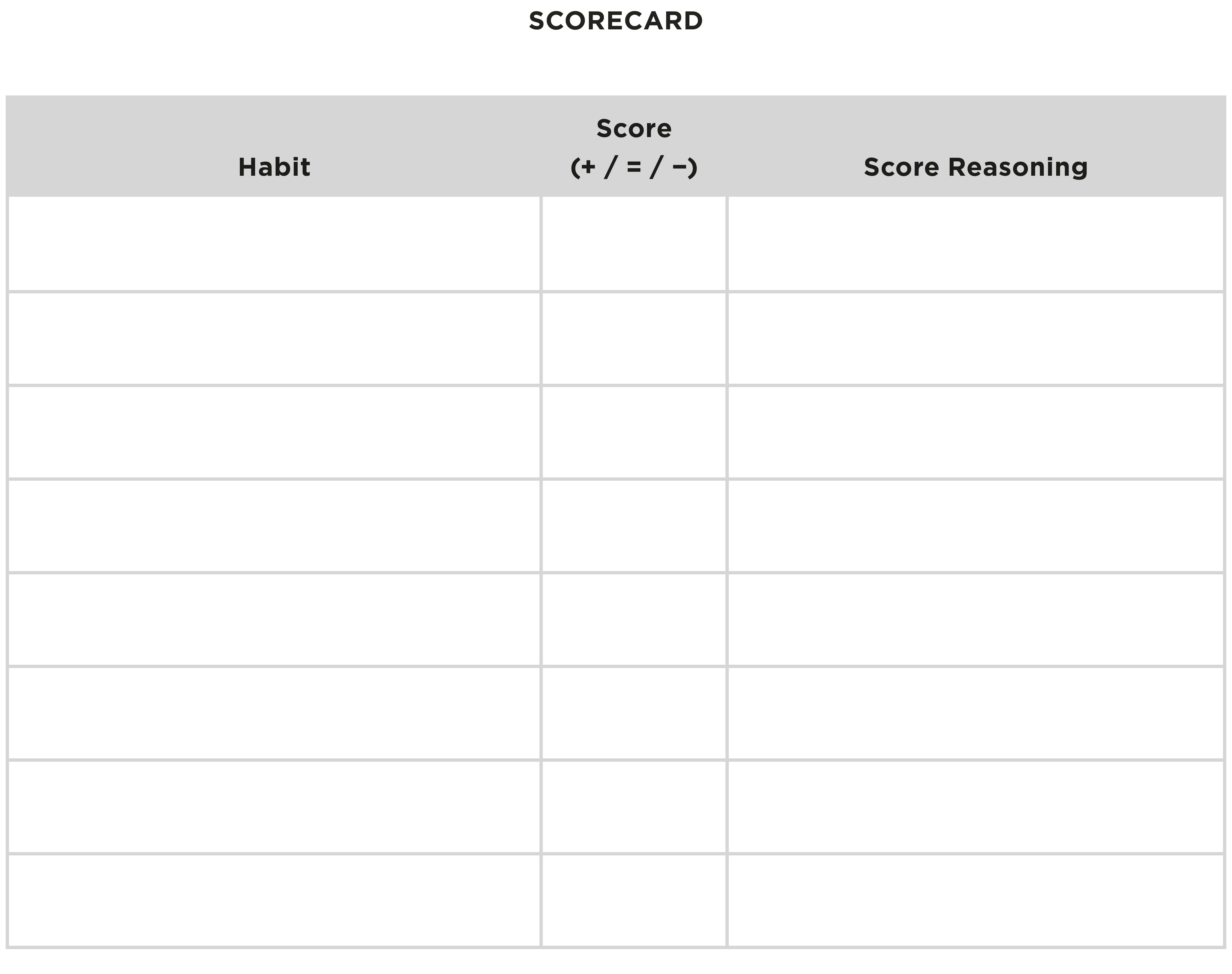 Habits Scorecard: Click here to download as a PDF.
